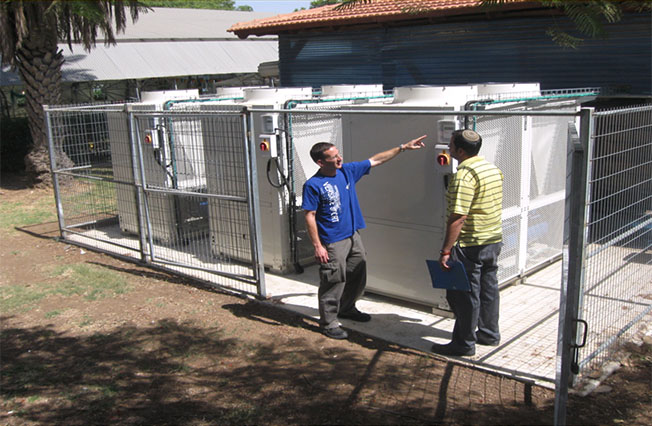 'Per il signor Anderson, abbiamo installato tre unità CGY/D-42 (HC) : ognuno dei quali offre 46 kW di potenza di riscaldamento con scongelamento automatico e protezione della corrosione di livello industriale. Il sistema di controllo sincronizzato gli consente di regolare la temperatura dell'acqua in remoto e bilanciare l'energia attraversare su tutte le macchine, mantenendo il rumore e le fatture gestibili. '